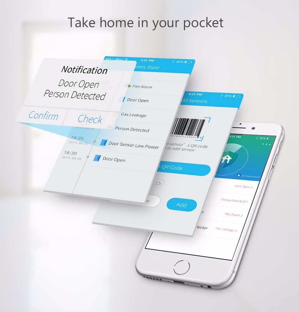 Receive instant notifications on your mobile phone when motion is detected, doors open, or sensors are triggered.